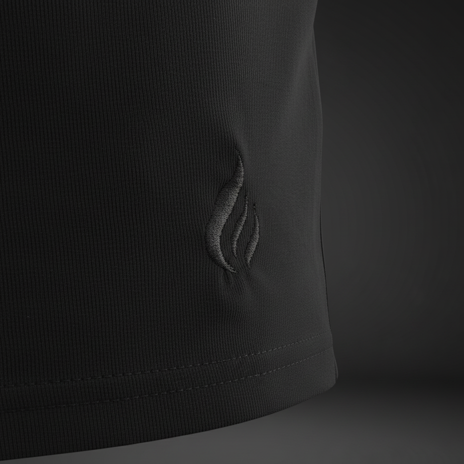 Ein besonderes Detail ist die fein gestickte schwarze Flamme am Saum – dezent, aber unverkennbar Wache3.