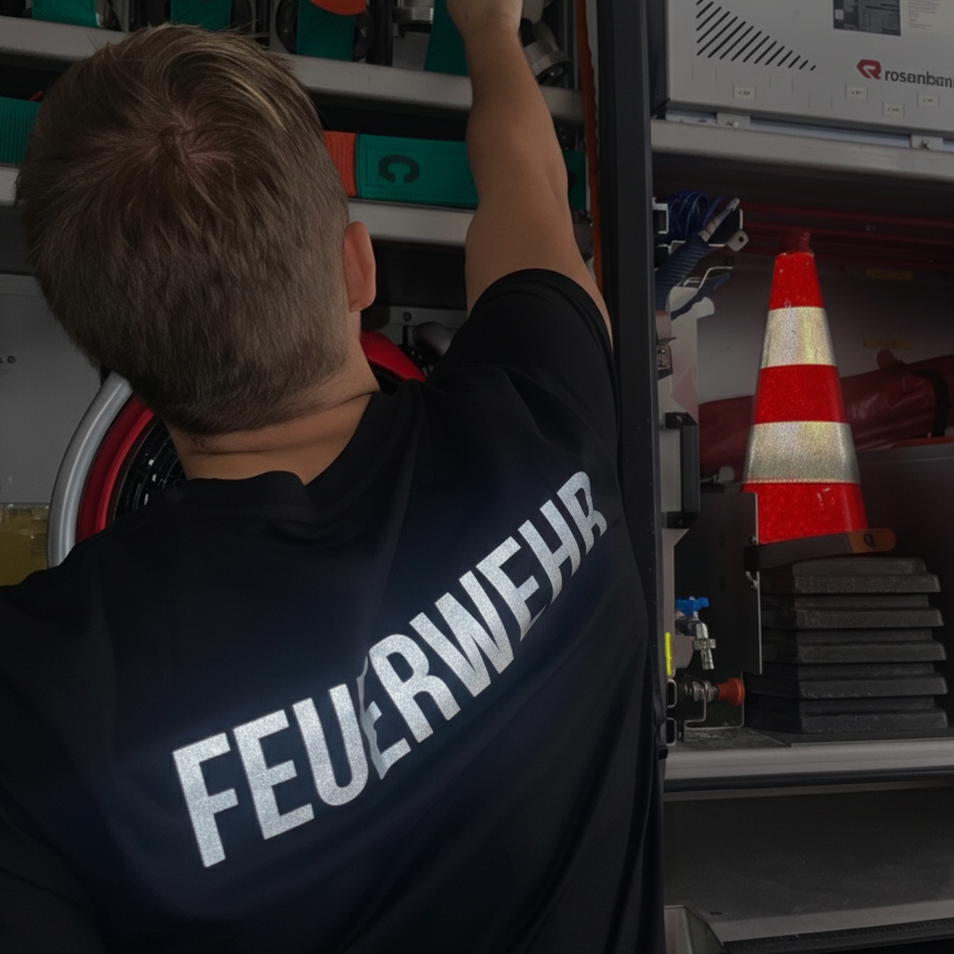Erhältlich mit Frontprint oder zusätzlich mit Feuerwehr- Rückendruck.